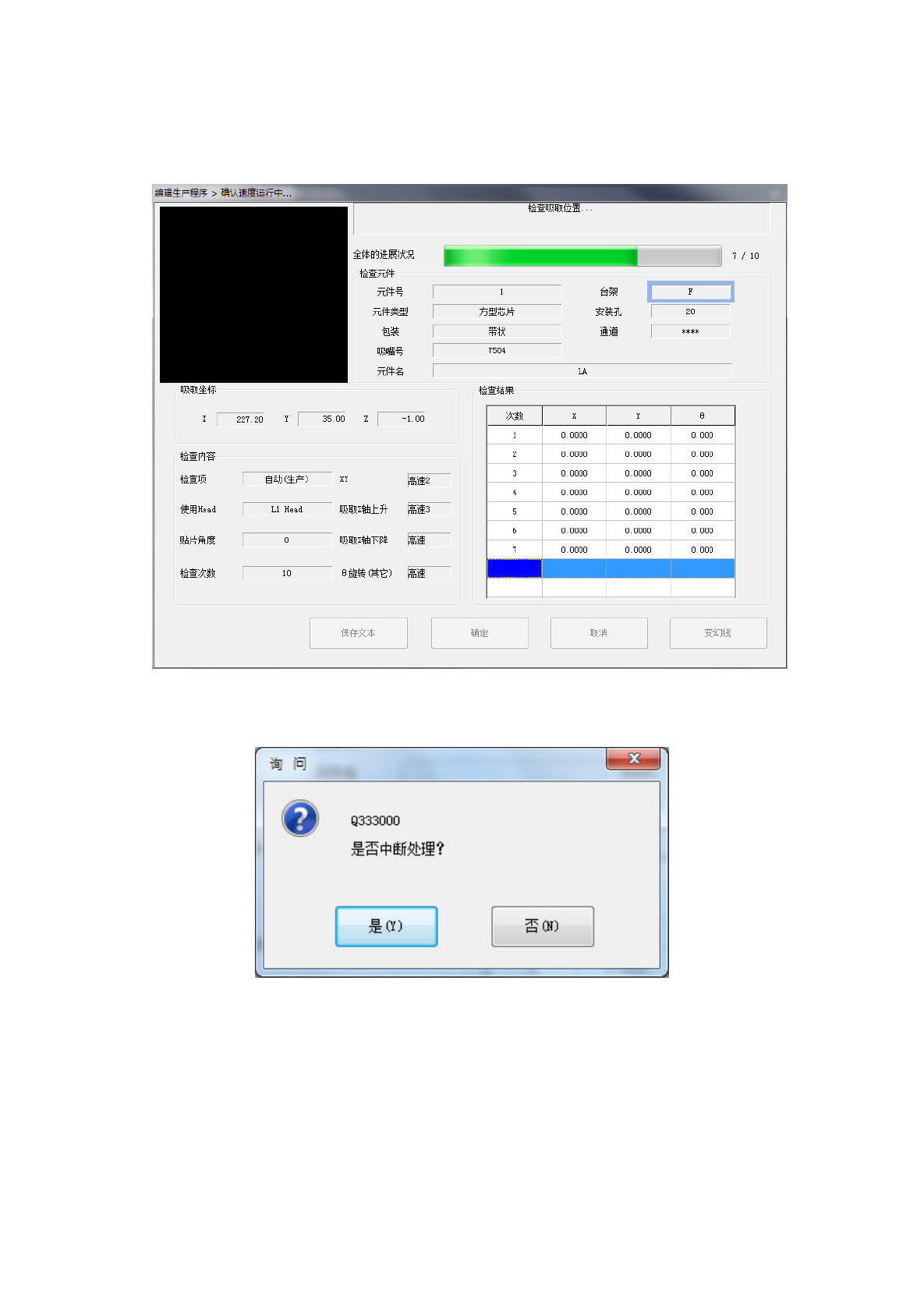 通过模拟动作对元件的吸取、识别、贴装时的 XY 偏移值进行确认,以及判断生产程序的速度是否