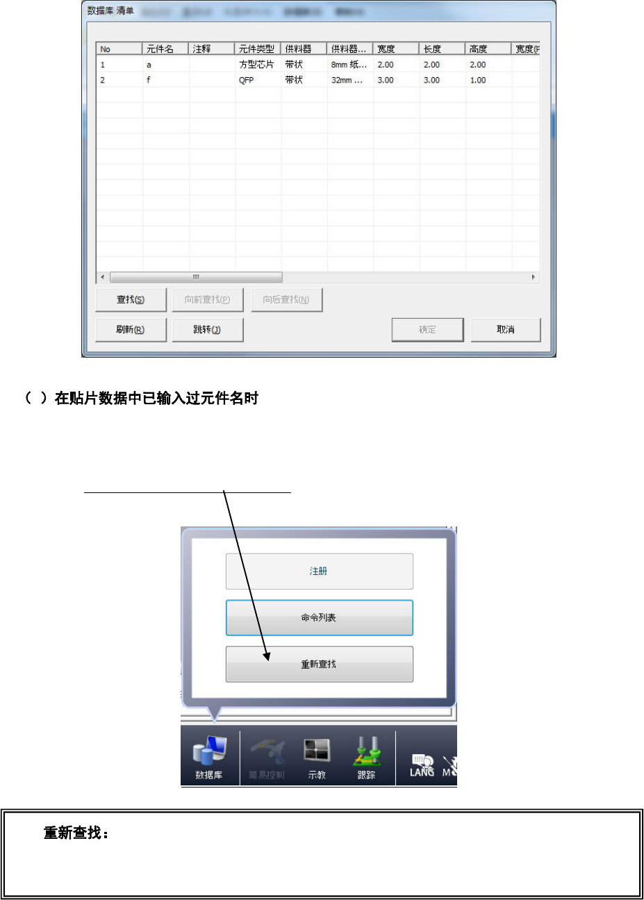 每执行一次“重新查找”,即对贴片数据中的所有元件名进行一次核对、注册 (覆盖)。