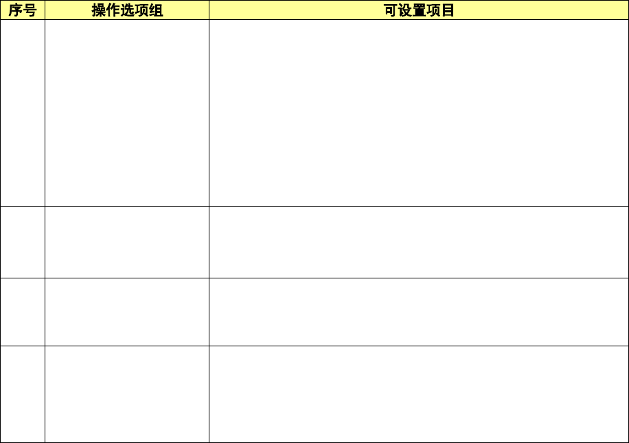 操作选项中可设置的项目如下。