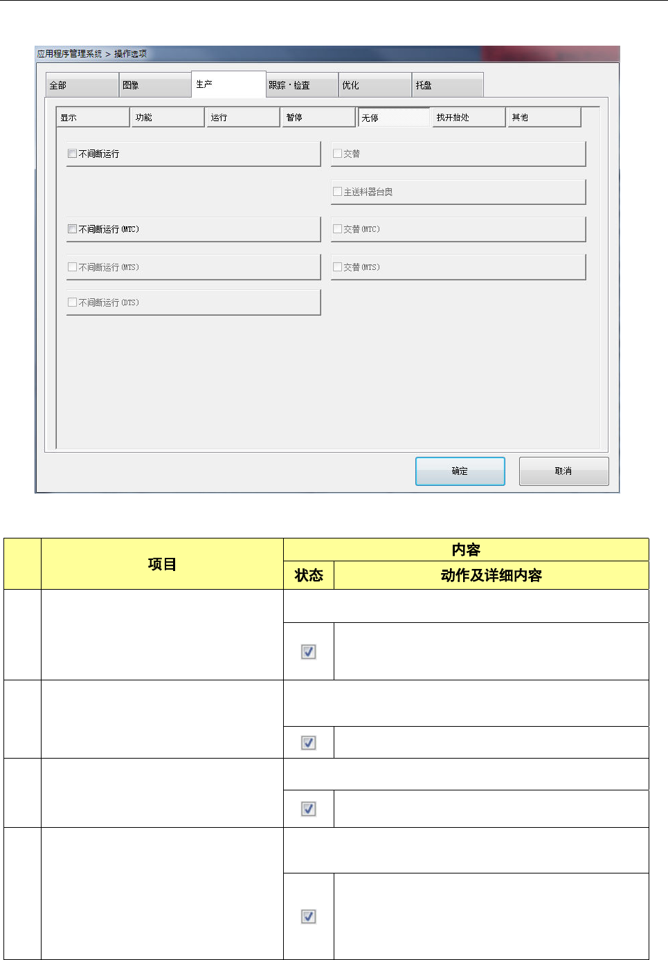 在不间断运行时设置是否执行交替生产模式功能。