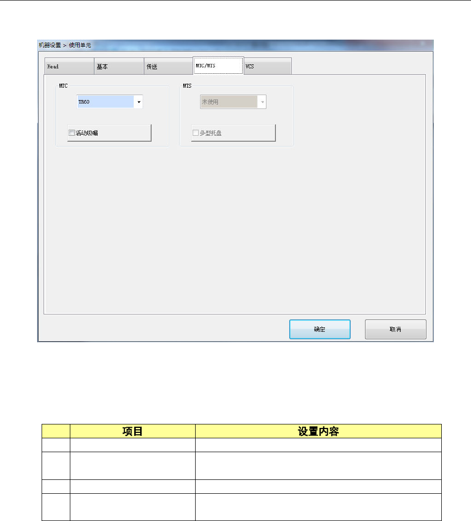 第 2 部 功能详解篇 第 8 章 机器 设置 8-12 8-3-1-4 MTC/MTS 选择 MTC/MTS ,会显示以 下画面。 点击各选项 卡,可指定 [Head] 、 [ 基本 ] 、 [ 传 送 ] 、 [MTS] 、 [ VCS] 。 (1) 设置项目 设置 MTS 功能的 使用。 No. 1 MTC 设置单元使用 /未使用及 类型。 2 活动吸嘴 使用 MTC 时,可设 置此项。 设置使用/ 未使用活 动吸嘴。 3 MTS…