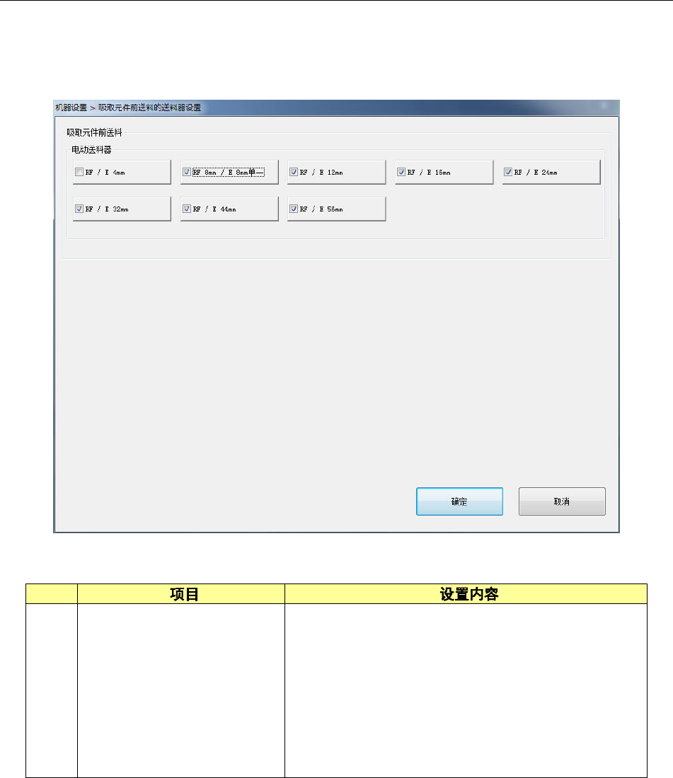 操作选项“生产 – 其他”的“吸取元件前送料”有效时,设置各送料器类型吸取前送料的相关