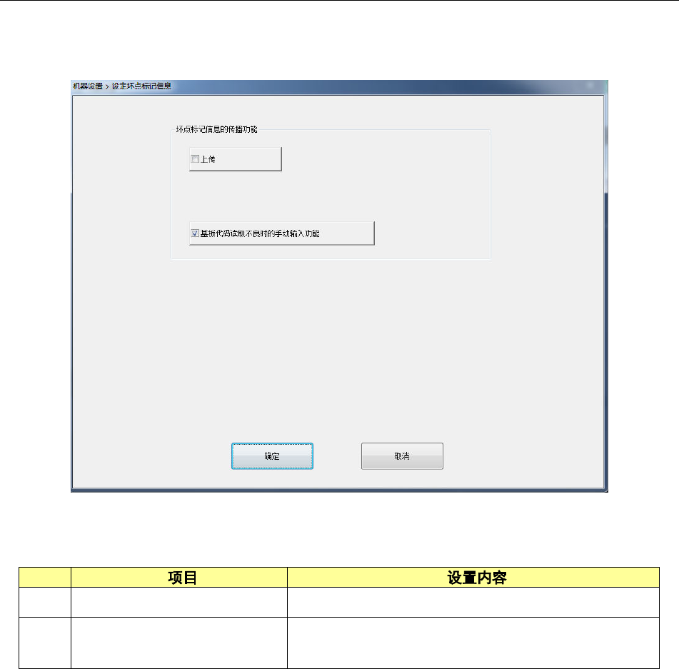 第 2 部 功能详解篇 第 8 章 机器 设置 8-40 8-3-5-6 设定坏板标记信息 坏板标记的传 播功能为有 效时 ,可以设定 坏板标记信 息。 选择设定坏 板标记信 息时,显示以下画面 。 (1) 设置项目 No. 1 上传 上传贴片机时 勾选。 2 基 板代 码读 取 不良 时的 手动输 入 功能 读取基板代码 失败时, 为了能在暂停画 面进行手动输 入, 需要进行勾选。 (2) 设置方法 1) 通过单选按钮, 进行个别 选…