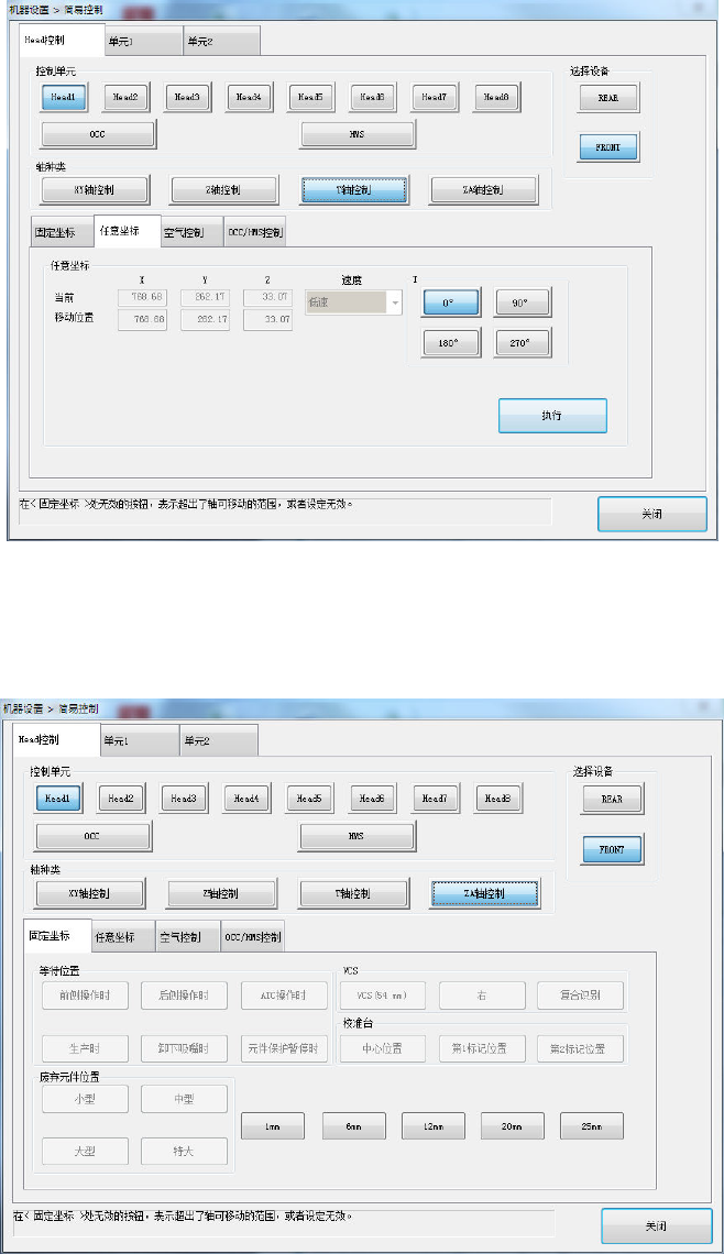 ・ XY 轴控制:等待位置、废弃元件位置、VCS 位置、标记位置、单元位置、任意坐标