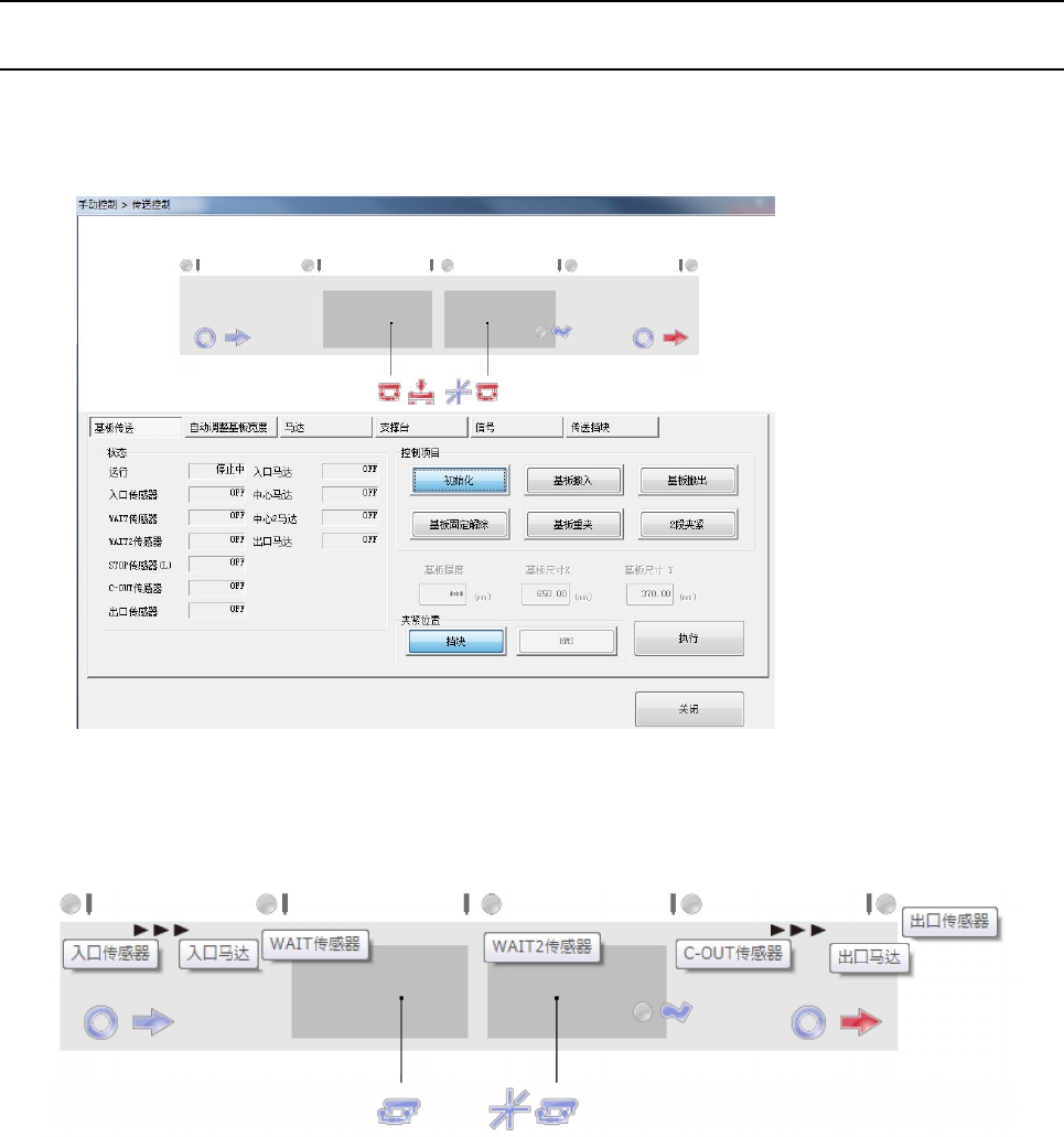 在画面上部显示各传送传感器·传送马达的状态。
