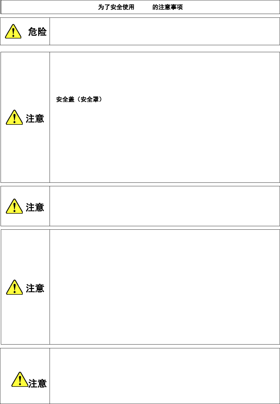 1. 为防止人身受伤,请勿在拆下安全盖(安全罩)、安全装置等状态下运行。