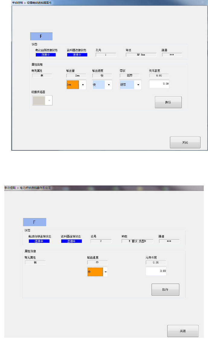 [电动台架连接状态],[送料器连接]为[未连接]时,不能进行[执行]操作。
