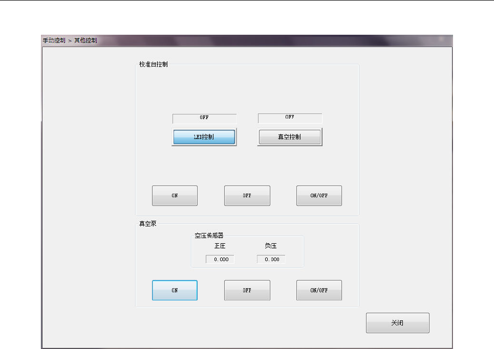 用单选按钮选择控制项目,按「校准台」旁的[ON]按钮、[OFF]按钮、[ON/OFF]按钮进行控制。