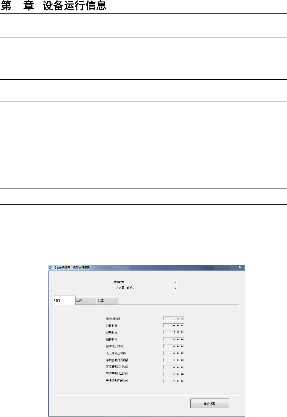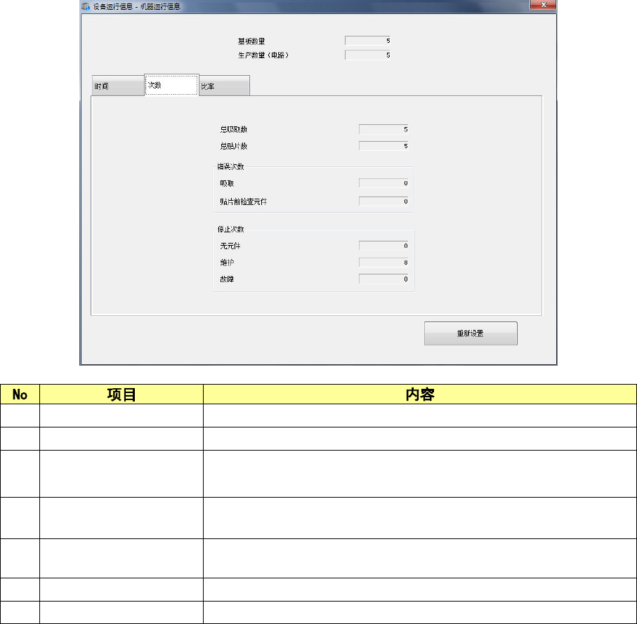 显示机器的运行时间(基板生产时间的累计等),吸嘴拆装次数等设备固有的运行信息。
