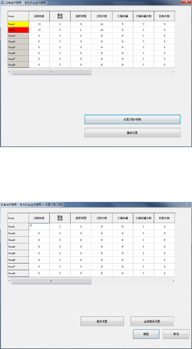 5) 按下[取消],为恢复每个 Head 的运行信息数据,退出设置次数/级别画面。
