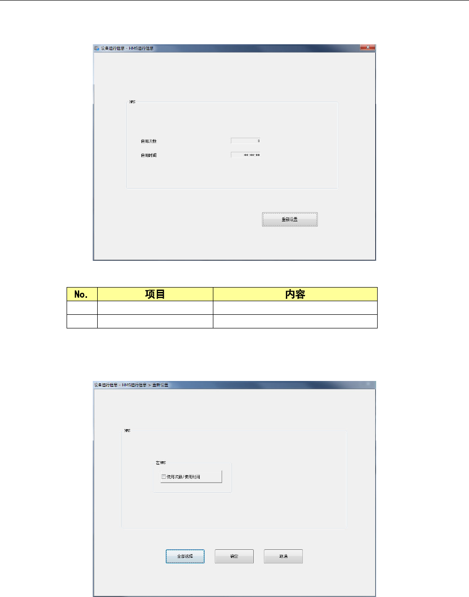 第 2 部 功能详解篇 第 10 章 设备运行信息 10-26 10-4-3 HMS 运 行信息 选择主菜单的 [ 识别·检查 ] - [HMS 运行信息 ] , 即可显 示 HMS 运行信 息画面。 (1) HMS 1 HMS 使用 次数 使用 HMS 的次数累计。 2 HMS 使用 时间 使用 HMS 的时间累计。 (2) [ 重新 设置 ] 按钮 按下 [ 重新 设置 ] 按钮或主 菜单 的 [ 初始 化 ] - [ 重新 设置 …