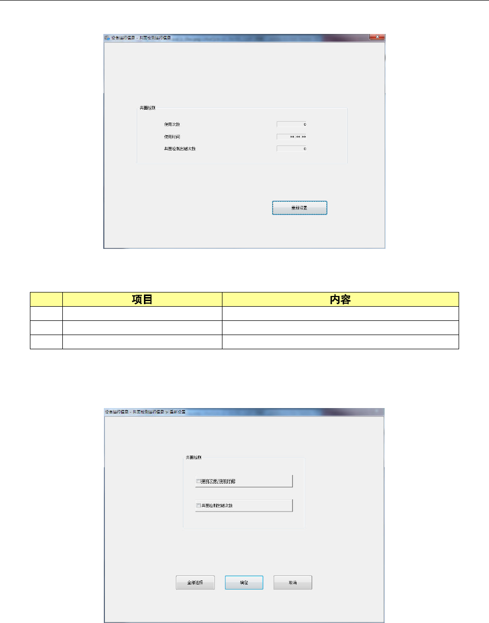 第 2 部 功能详解篇 第 10 章 设备运行信息 10-30 10-5 设定 10-5-1 设定 - 吸嘴毎运行信息 请参见「 10-3- 4 各吸嘴运 行信息 (3) 设 定次数·级 别」。 10-5-2 设定 - 各贴片头运行信息 请参见「 10-3- 5 各贴片头运行信 息 (3) 设 定次数·级别」 。 10-6 初始化 10-6-1 重新设置 与 10-4 的各个画面 有的 [ 重新设置 ] 按 钮功能 相同。 10-6-2…