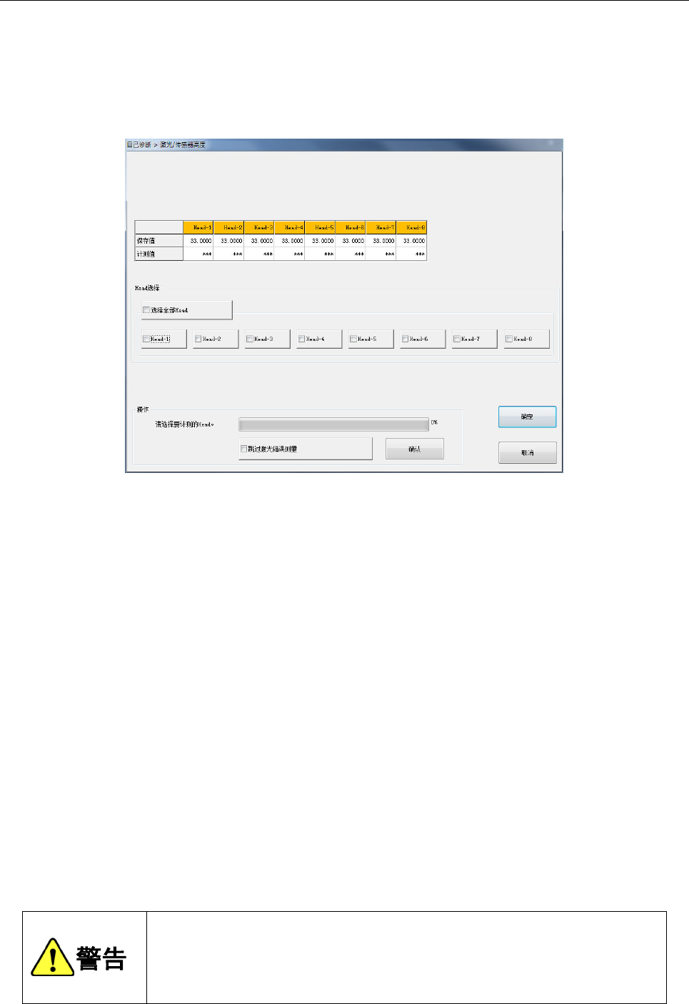 如果要再次测定发生错误的 Head,请在测定完成后(进度条变为 100%后),再次选择
