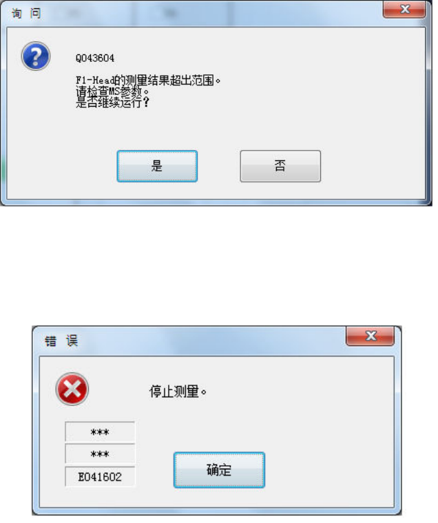 激光识别错误及计测结果处于规定范围以外时的以外错误,在显示对象错误提示后,会显示以