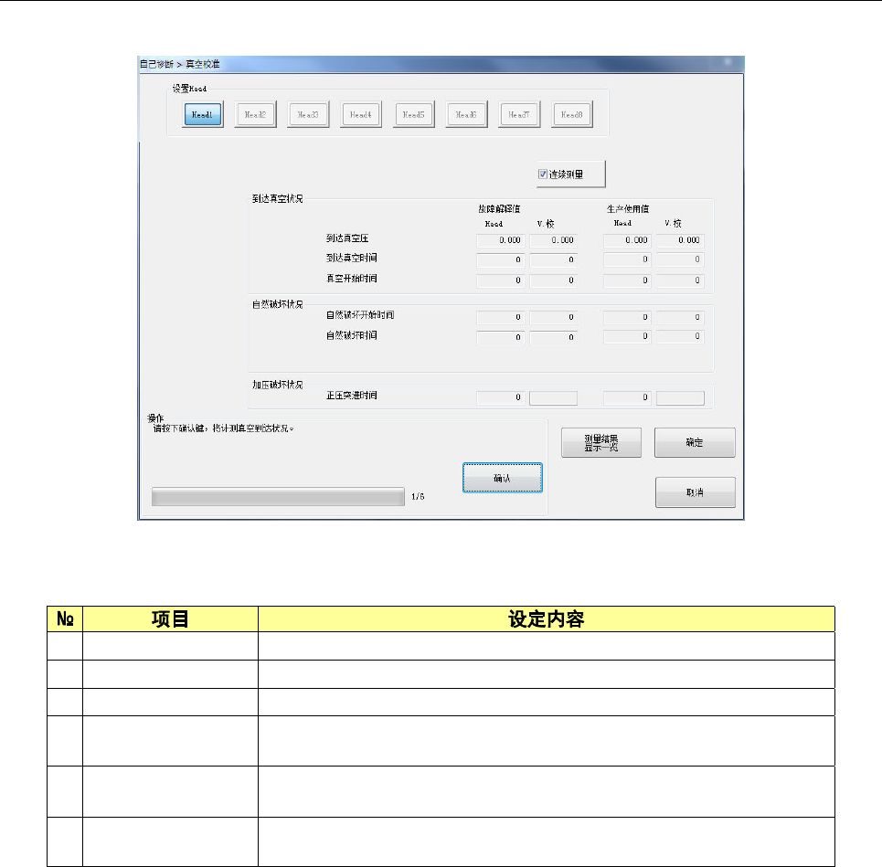 设定 Head 在真空校准上移动,计测真空到达状况 3 次。