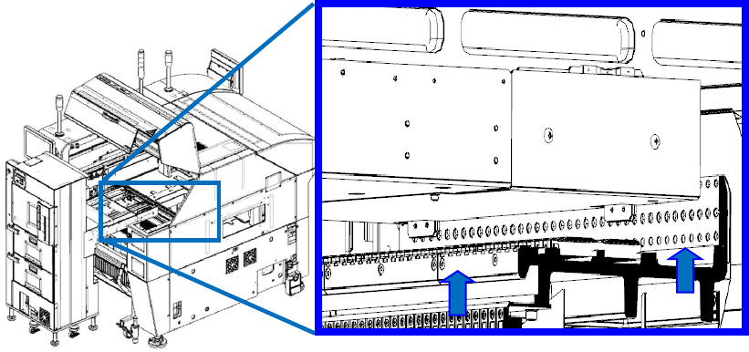 在 MTS 的第 1 段上安装托盘垫。返回原点操作后,依次点击机器设置>位置设置>MTS 安装位置偏