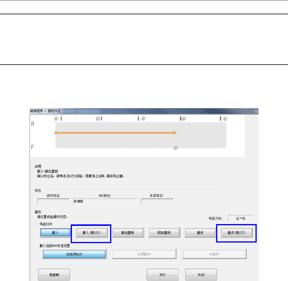 由「基板传送」实施的挡块位置夹紧,与以往一样通过「搬入基板」按钮进行选择。