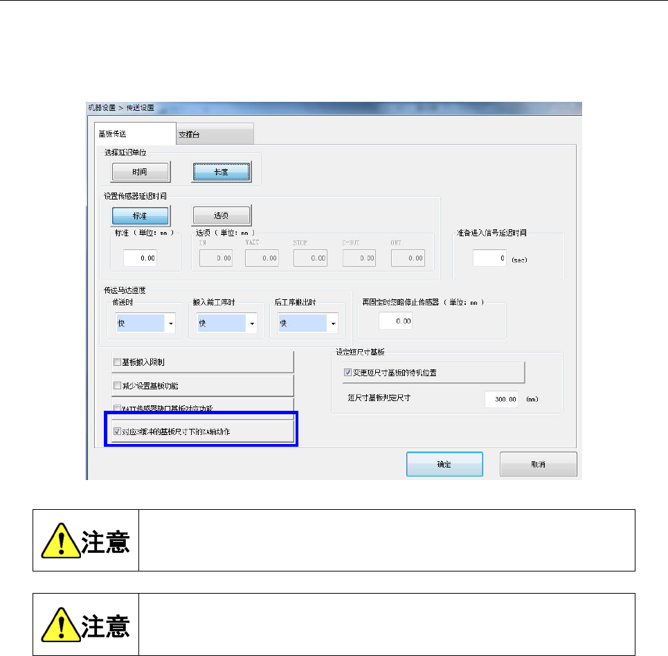 在机器设置画面选择[传送设置]-[基板传送],请确认是否勾选「对应 3 缓冲的基板尺寸下的 ZA 轴动