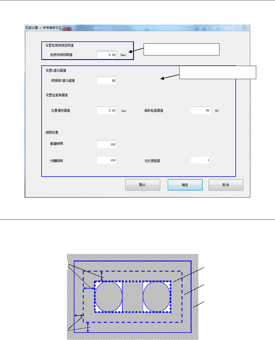 通过[功能设定]-[设置焊锡偏移校正]的[设置检测领域容限值]设置检测范围的偏移值。