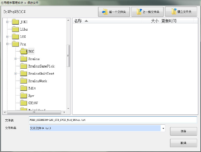 请指定路径及文件名,按[保存]按钮。输出文本格式的文件。按[取消]按钮则返回生产程序列表对