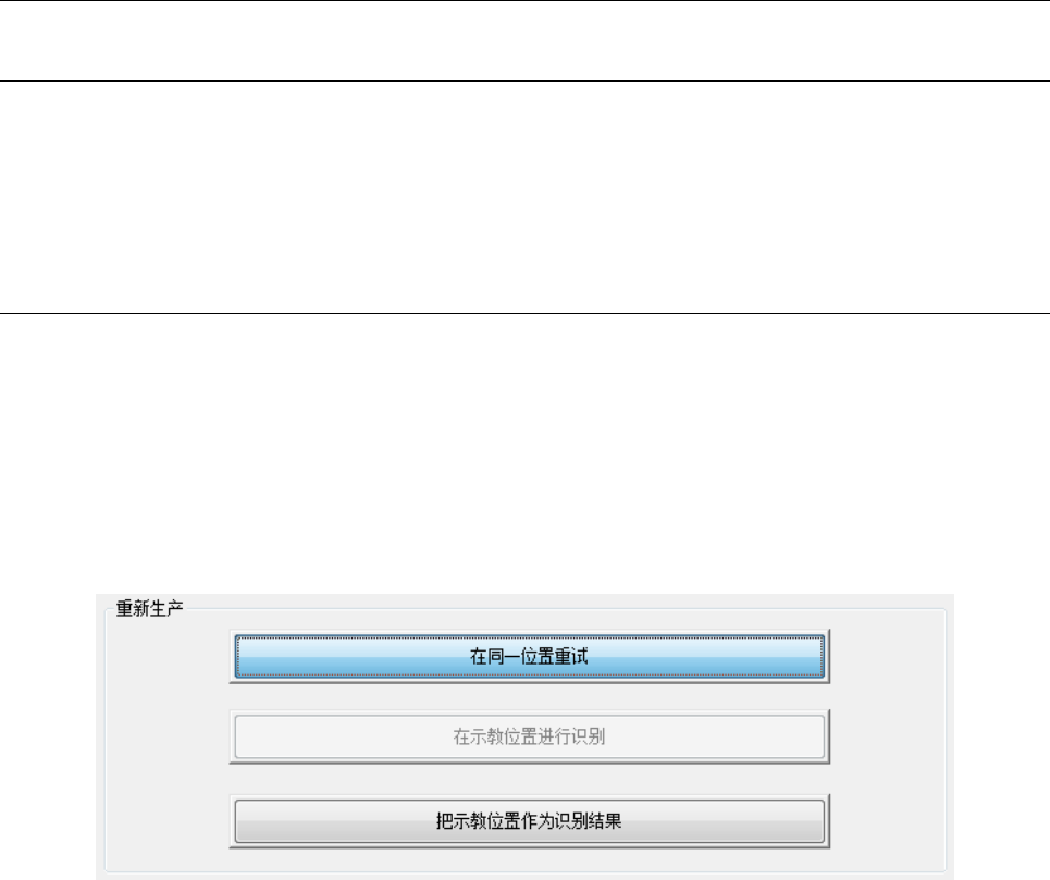 出现识别错误时显示的生产再开始模式,不可选择 [在示教位置进行识别]。要不改变位置重新识别时,