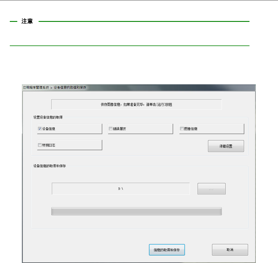 ③ 利用[信息的取得和保存]按钮取得设备信息,并将取得的文件进行压缩后保存。