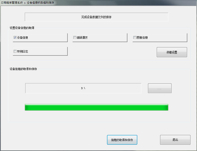 ④ 如果成功地取得设备信息文件并压缩,画面显示将变为如下所示。