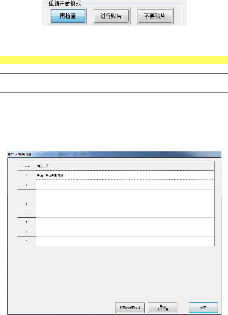 从共面性错误、平行(共线性)错误的暂停重新开始方法有“再检查”及“进行贴片”、“不要贴片”。