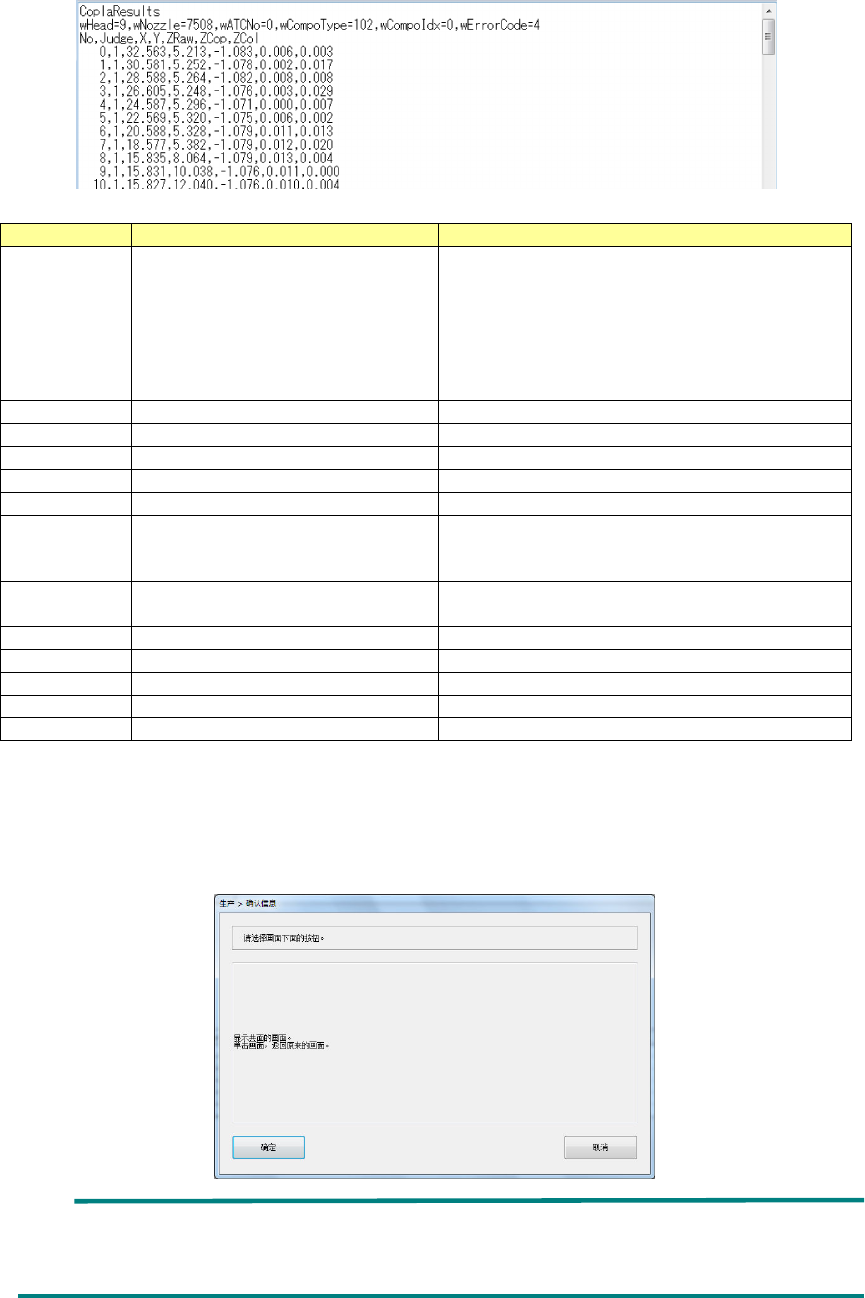 第 2 部 功能详解篇 第 12 章 选项组件 12-105 输出详细信 息, 将输出各 电极的检查 结果、 共面 传感器的坐标 系 X 坐 标、 Y 坐标 、 距离焦点高 度 的 Z 坐标、共面性 计算结果、平 行(共线 性)计算结果。 名称 说明 备注 wHead 检查 Head 3 : L1 Hea d 4 : L2Head 5 : L3Head 6 : L4Head 7 : L5Head 8 : L6Head 9 : R Hea…