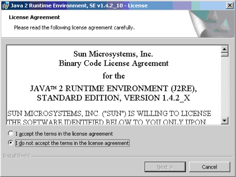 Aufruf des Programms j2re-1_4_2_10-windows-i586-p.exe. 1