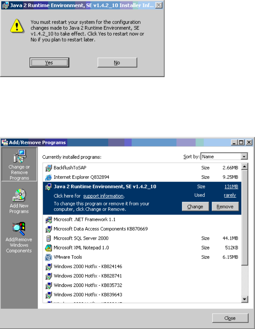 Nach der Installation ist unter Start /Settings/Control Panel/ Add –Remove Programs die Java 2