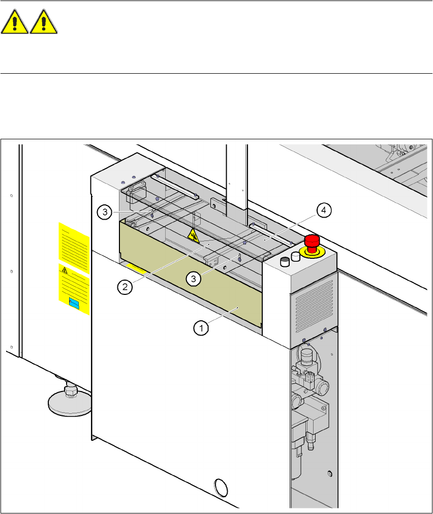 The gantry positioning range is covered by two protective covers. If you want to open the protec-
