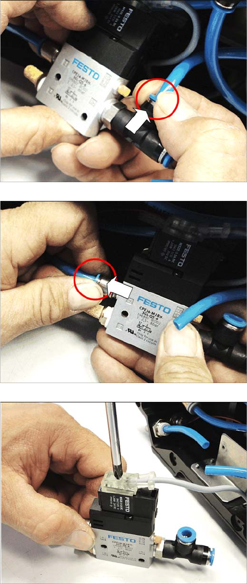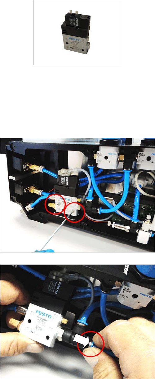 Replacing Spare Parts Solenoid valve 3.18.1 Removin g the Solenoid Valve 72 Service Manual SIPLACE Glue Feeder 3.18 3 . 1 8 S o le n o id v a lv e Solenoid valve Required spare parts Solenoid valve CPE14-M1BH-3GL -QS-6, …