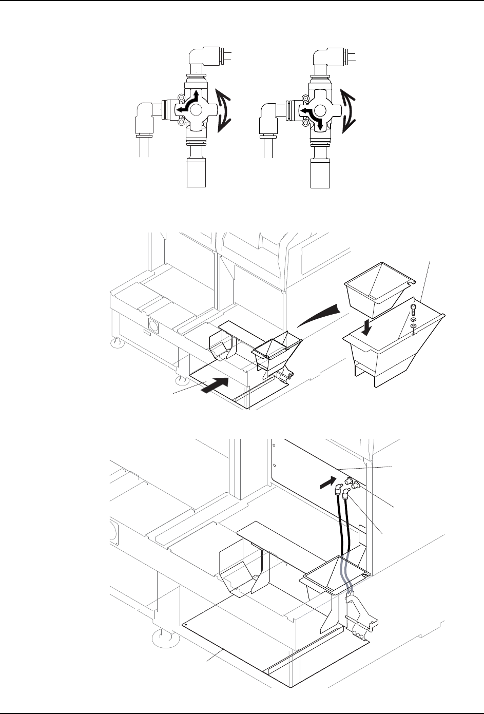 3. 盖板内侧附有 2 个阀。请旋转、切换阀的摇柄。使 2 个阀处于相同的状态下安装盖板。