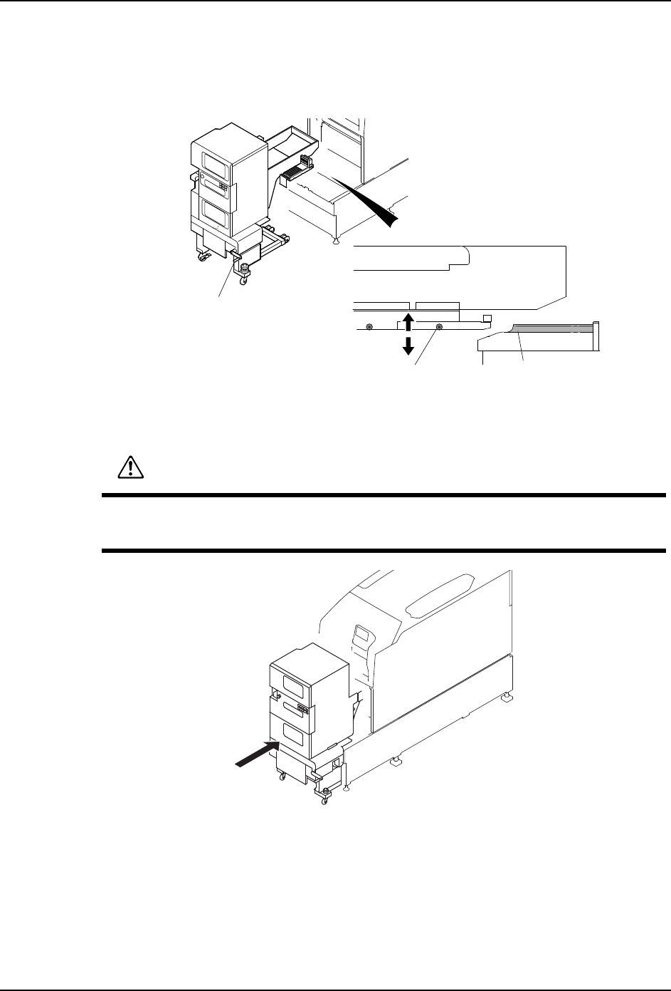 存在在料盘单元 -LT 和本机器之间将身体夹住而造成重伤和压死的危险。