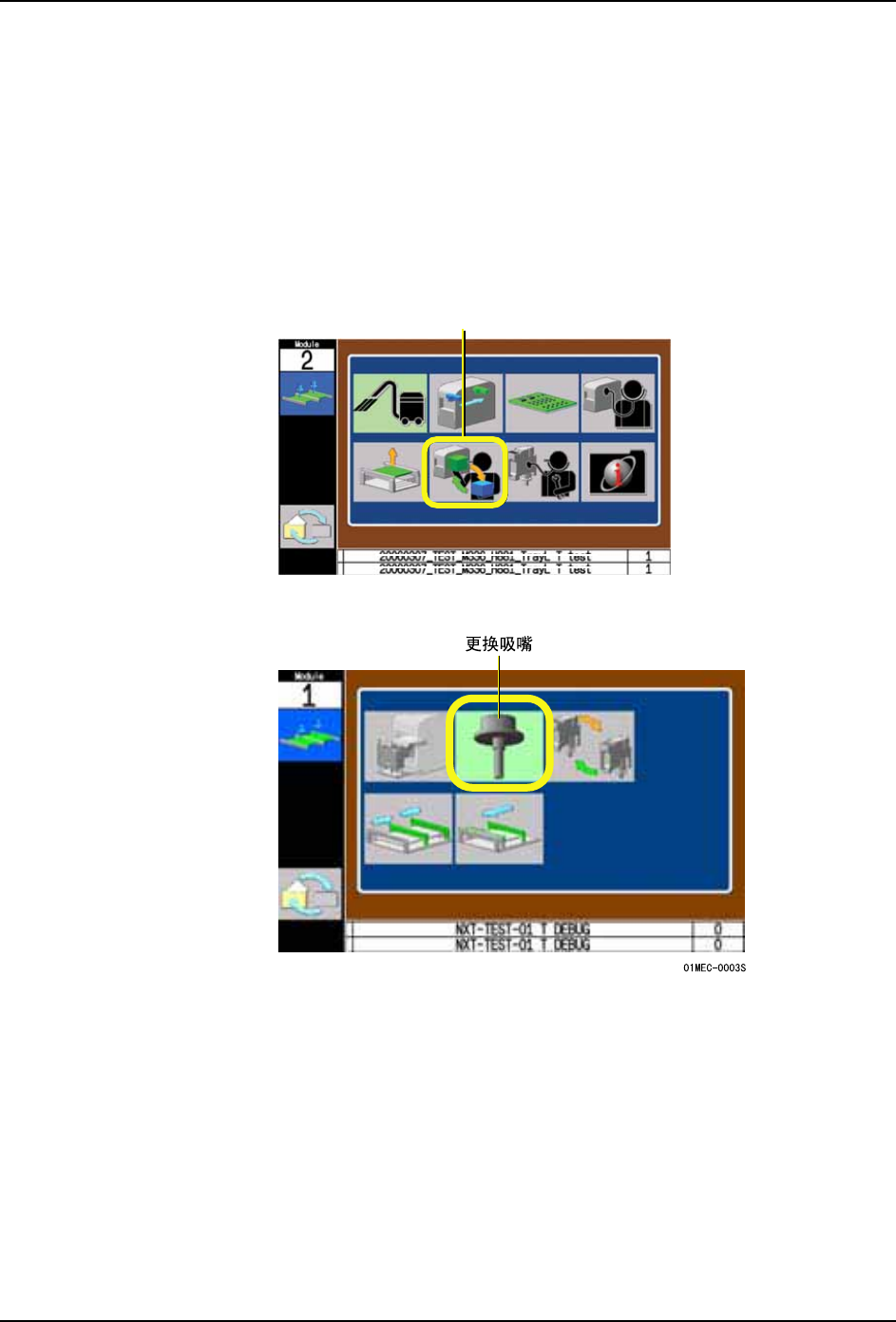 5. 按下 START 按钮后,装载在工作头上的吸嘴自动地收存到吸嘴置放台上。