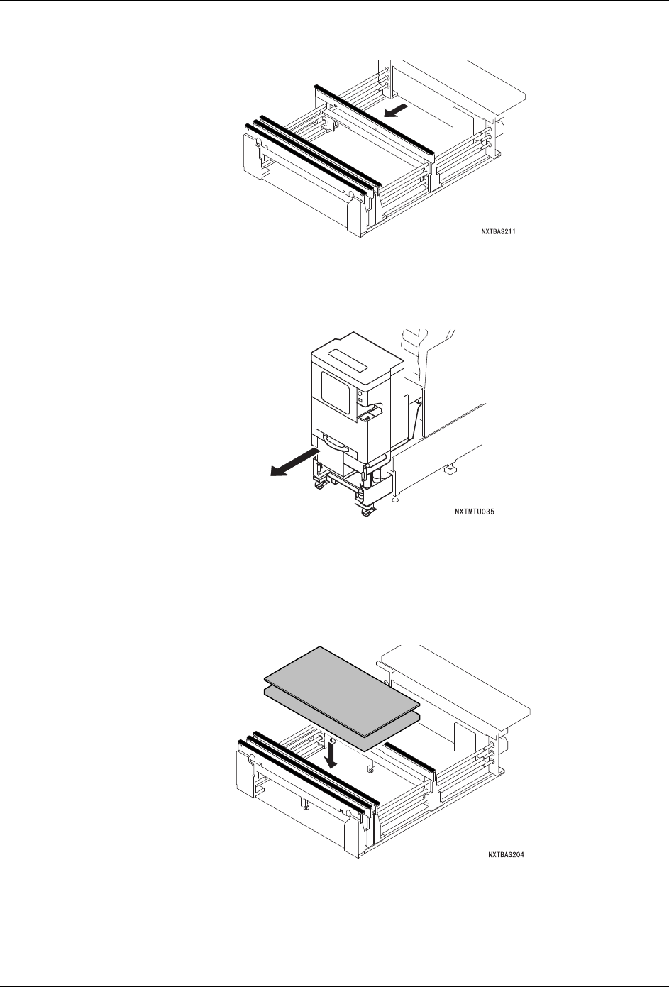 28.请拆下料盘单元 -L。从模组中慢慢地拉出料盘单元 -L/LT。拆除结束后,在操作画面上
