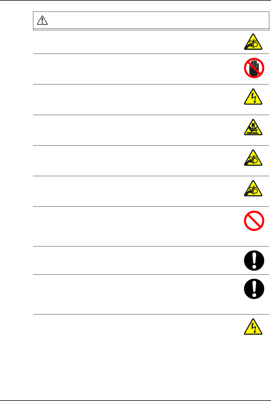 · 身体或者衣服有可能被卷入机器而受伤。