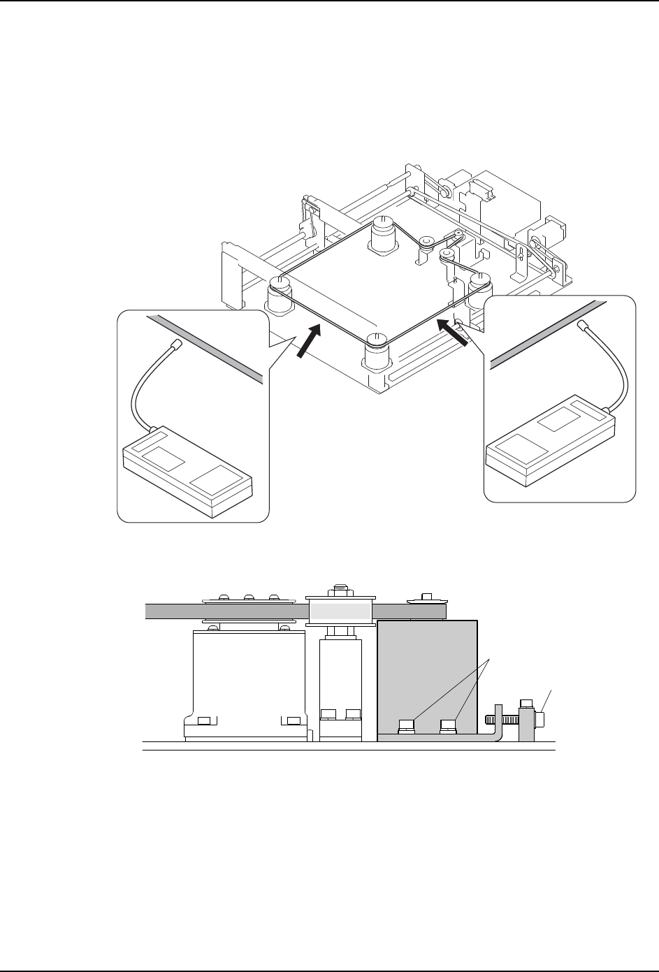 1. 请测定皮带的张力。确认在前面的皮带的跨距中央的测定值是 60.0±5.0Hz、右侧是