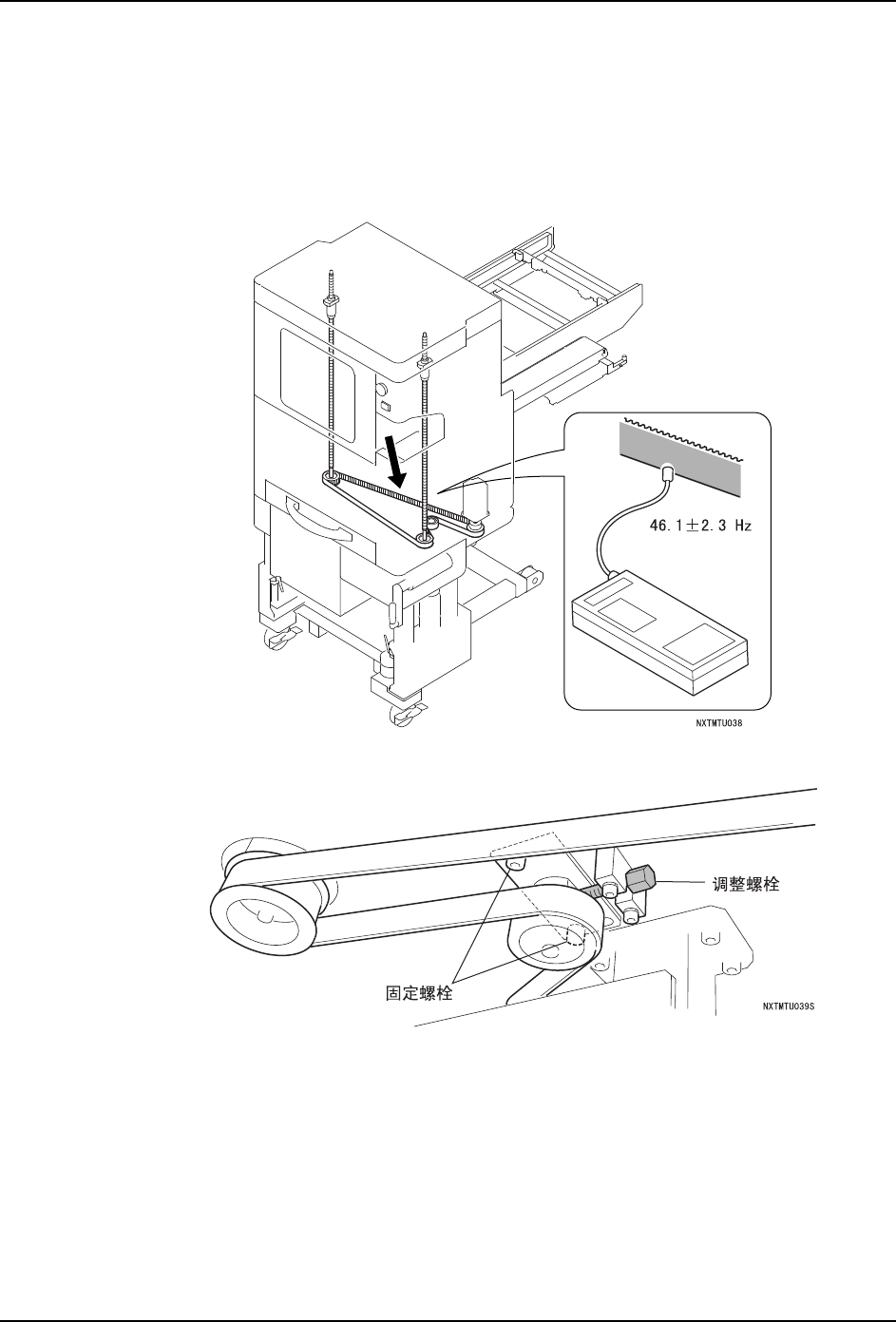 1. 请测定皮带的张力。确认在跨距最长的皮带中央的测定值是 46.1±2.3Hz。