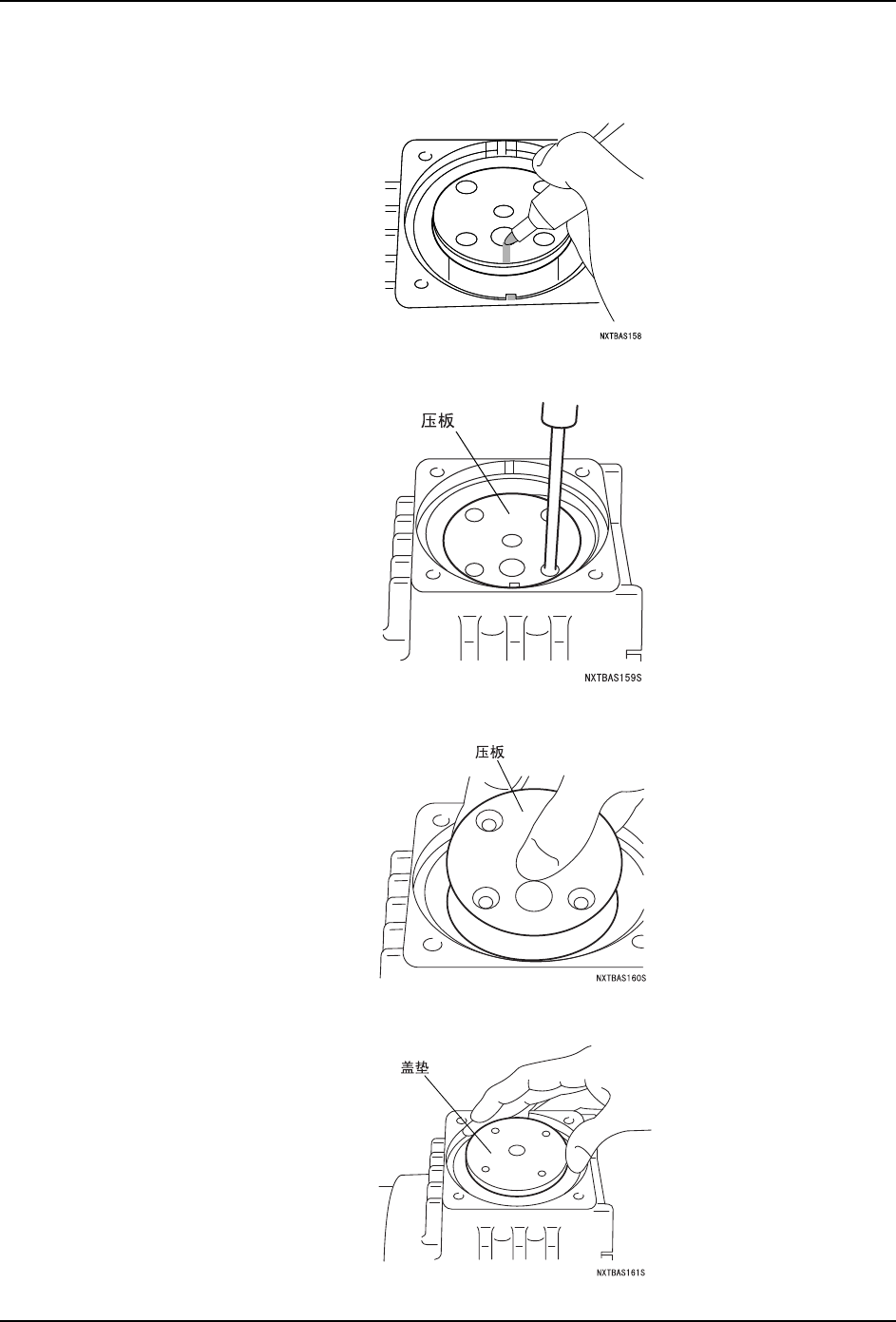 7. 消耗品的更换 QD029-27 376 NXT 机械手册 b. 用双手将装配接头向己方按压, 拔掉连接管。 拆下工作头盖罩。 此时, 请将左右的装 配接头一点点交替地拔出。 4. 拆下汽缸。 a. 在拆下汽缸前,用油性笔在外壳和汽缸上 做标记。 b. 用戴有手套的手,满满地将风扇向上旋转 。此时,请必须戴手套。 c. 将汽缸向上拔起。 fPAsb6Qk fPAsb6Qk Downloaded at 2012/05/31 17:08…