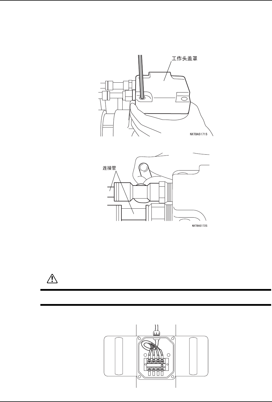 a. 将工作头盖罩的接头插入到管内,把外壳的螺丝孔与工作头盖罩的孔对齐。