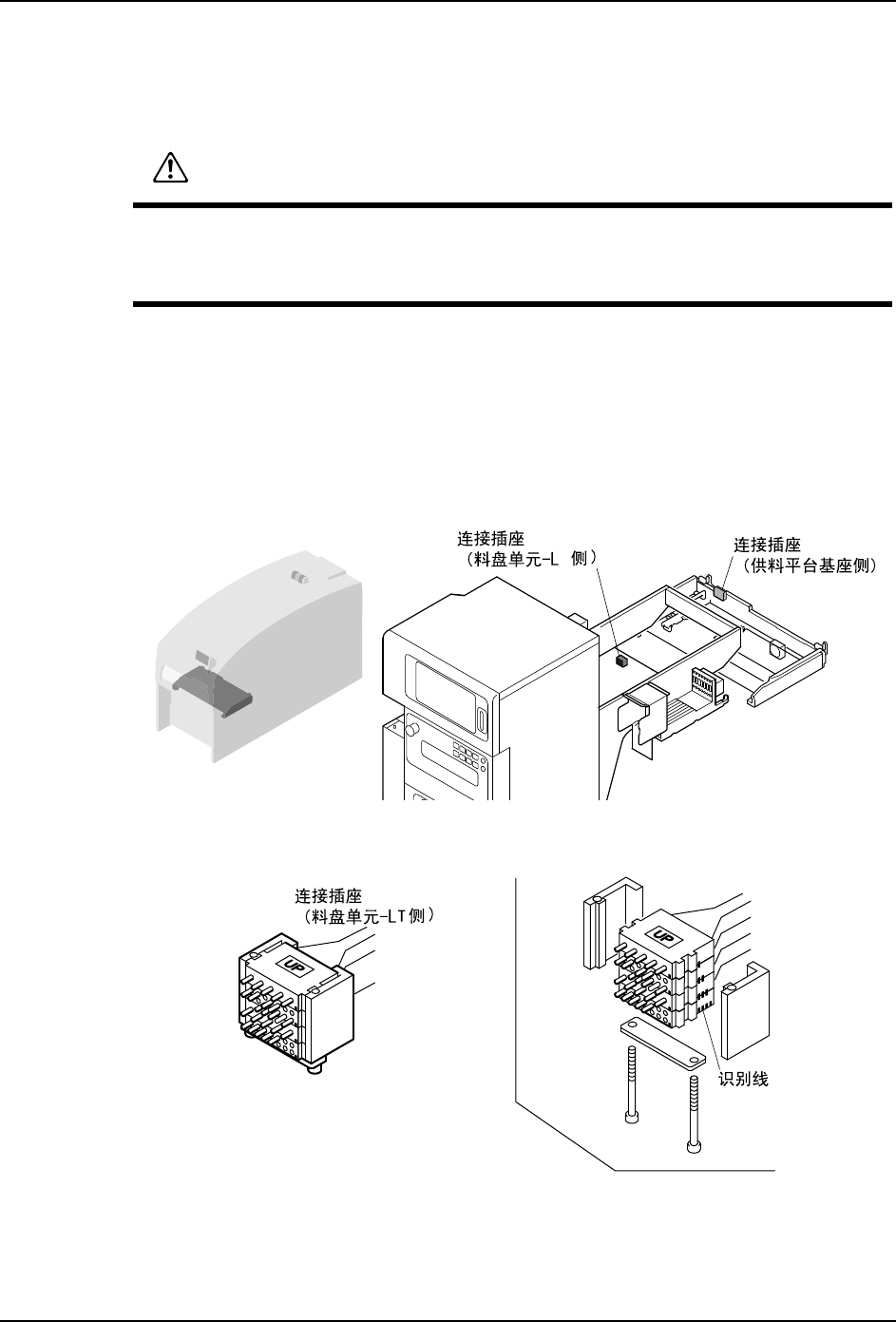 2. 在料盘单元 -LT 和料站托架基座上的图示位置上有用于布线的组合插座。