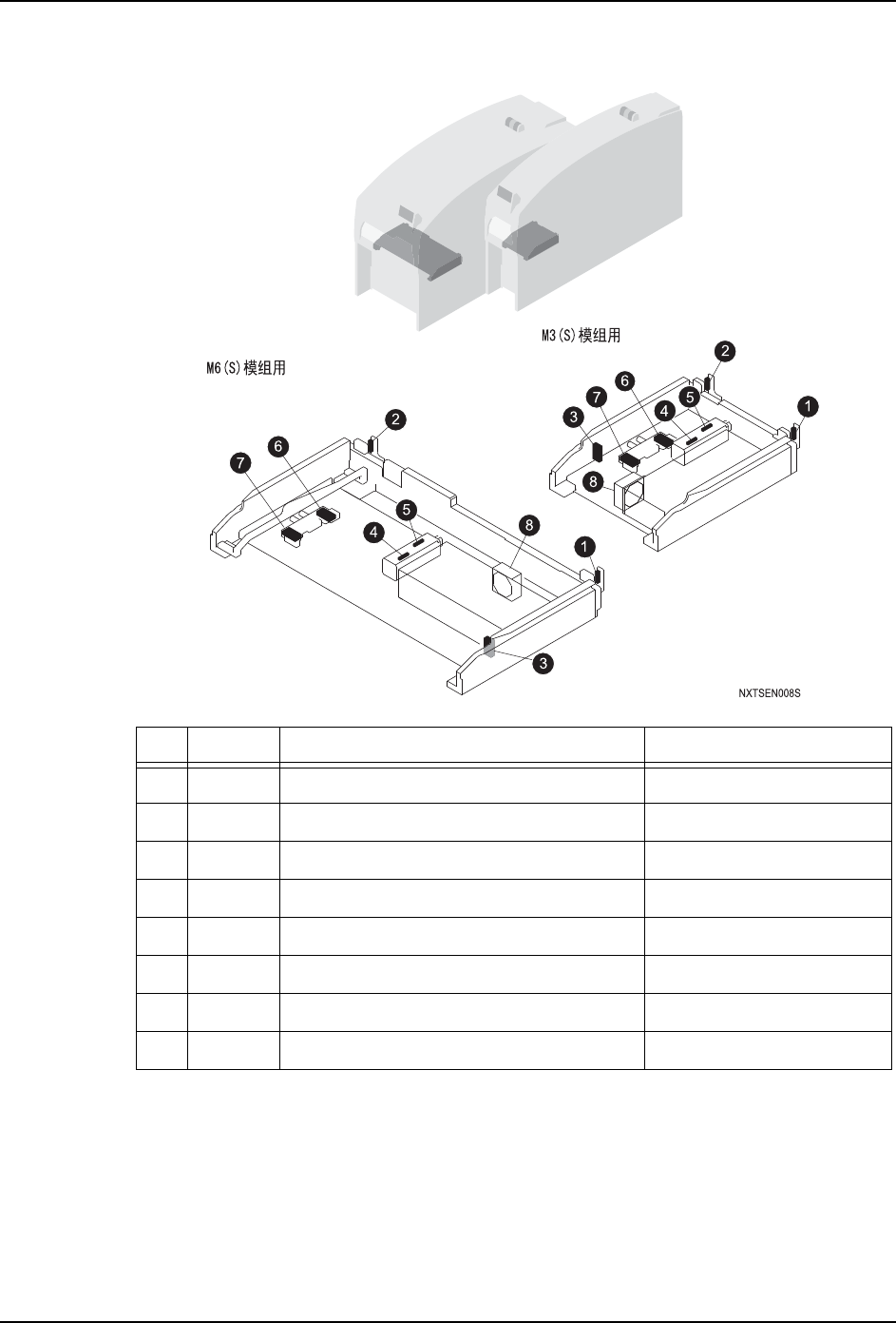 4. 传感器配置图 QD029-27 66 NXT 机械手册 4.8 废料带处理传感器 1 3 3 2 1 2 NXTSEN009S No. 地址 信号名 传感器名 1 RX019 Side 1 - 废料带切刀 动作端确认 Tape cutter advanced sensor 2 RX01A Side 1 - 废料带切刀 原位置确认 Tape cutter origin senso r 3 RY012 Side 1 - 废料带切刀 动…