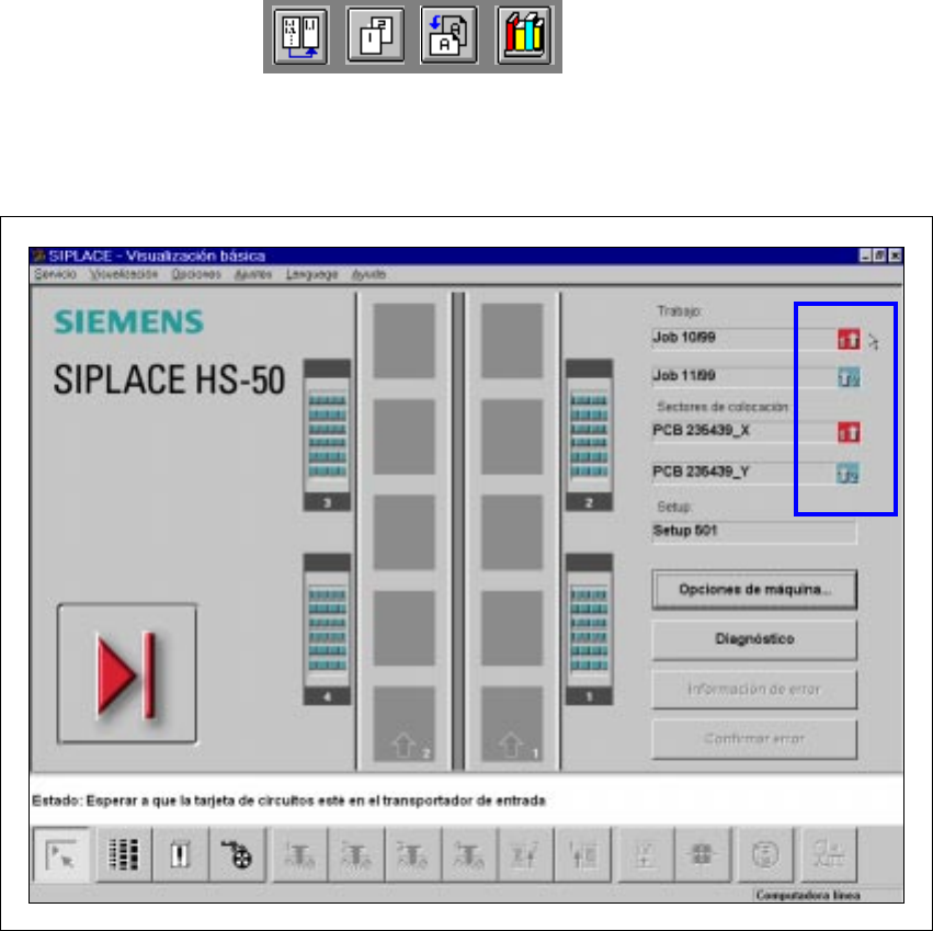 Instrucc iones de uso SIPLACE HS-50 3 Introducción y con ceptos básicos Versión de s oftware SR.501.xx E dición 12/99 ES 3.2 Bases de la interfaz gráfica del usuario 113 t I I t 3.2.2.3 Visuali zación de estado de la int…