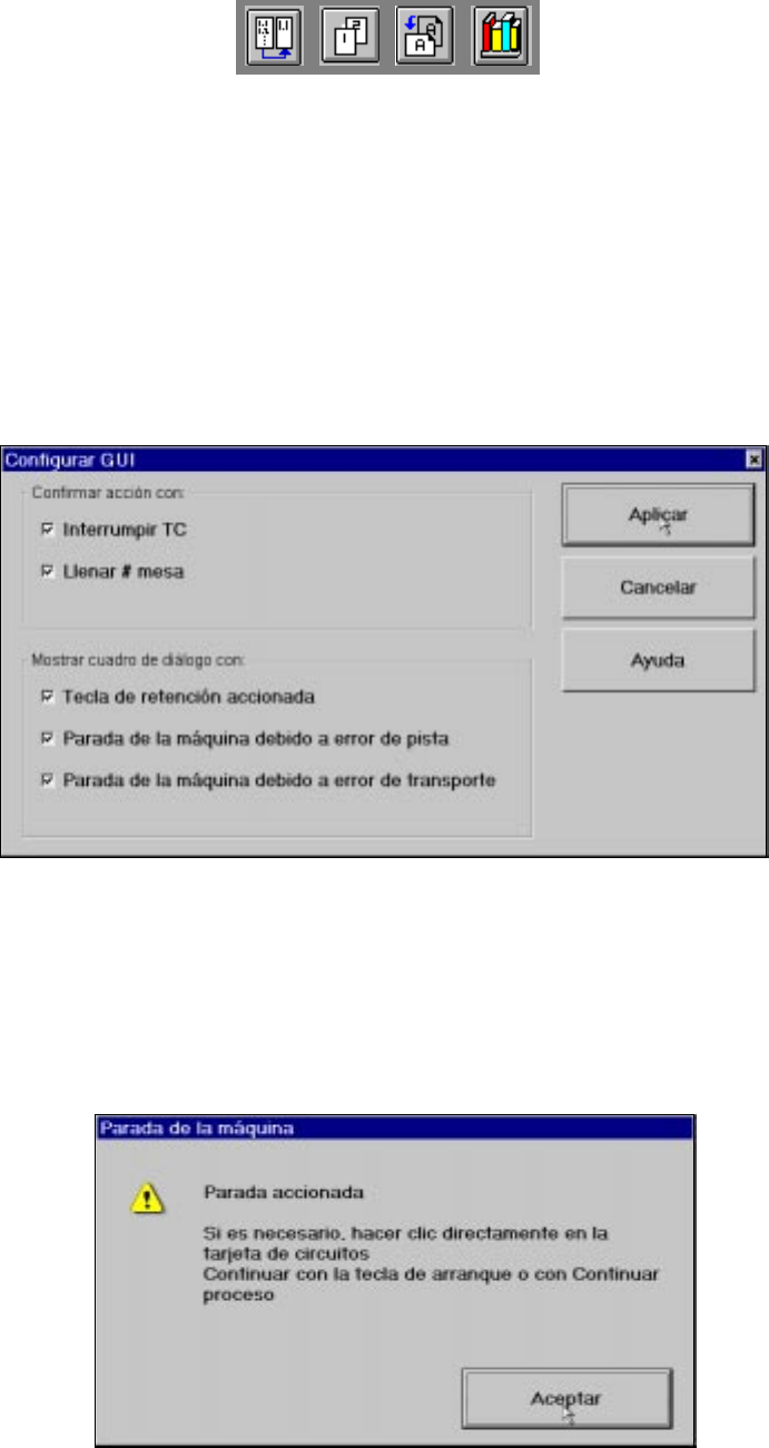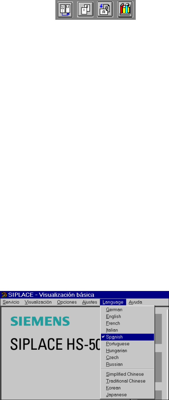 Instrucc iones de uso SIPLACE HS-50 3 Introducción y con ceptos básicos Versión de software SR.501.xx E dición 12/99 ES 3.3 Interfaz del usuario - Visualizaciones y menús 129 t I I t 3.3.2.5 Menú "Ajustes" El m…