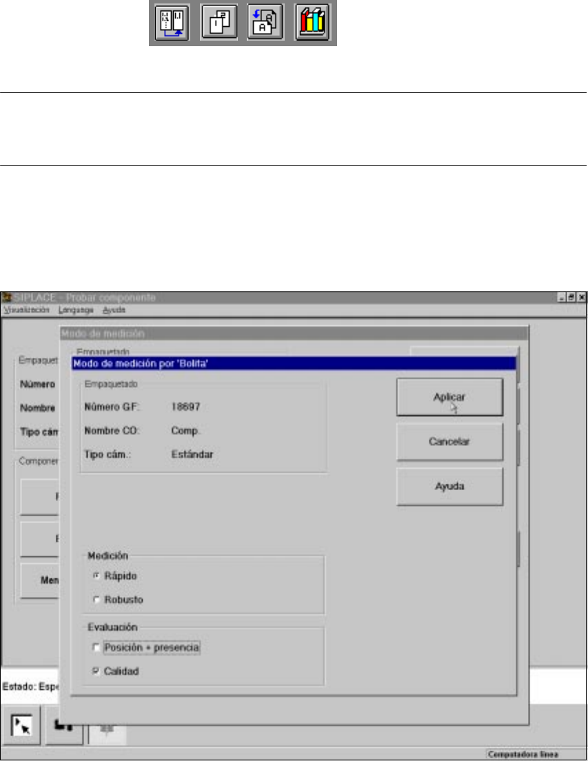 Instrucc iones de uso SIPLACE HS-50 6 Funciones ópticas Versión de s oftware SR.501.xx E dición 12/99 ES 6.6 Probar el componente 297 t I I t Ventana 6 – V entana indepe ndiente para cada patil la Aquí d efine una ventan…