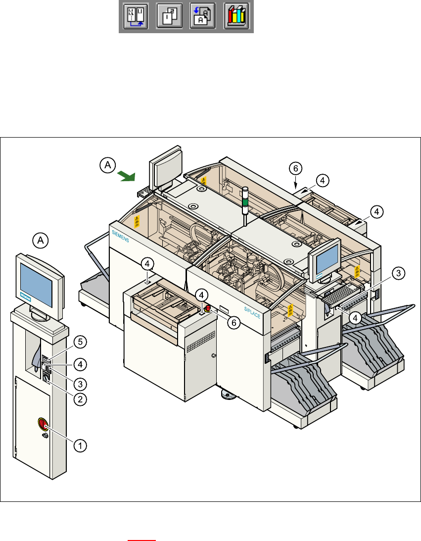 Instrucc iones de uso SIPLACE HS-50 3 Introducción y con ceptos básicos Versión de s oftware SR.501.xx E dición 12/99 ES 3.1 E lementos de operación y visualización en la máquina autom ática 97 t I I t 3.1.2 Interruptore…