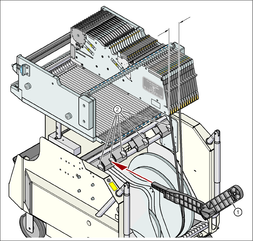 → Tarkasta, onko X-nauhansyöttömoduulin foliosäiliö täysi. Avaa sen tekemiseksi läppä (pos.