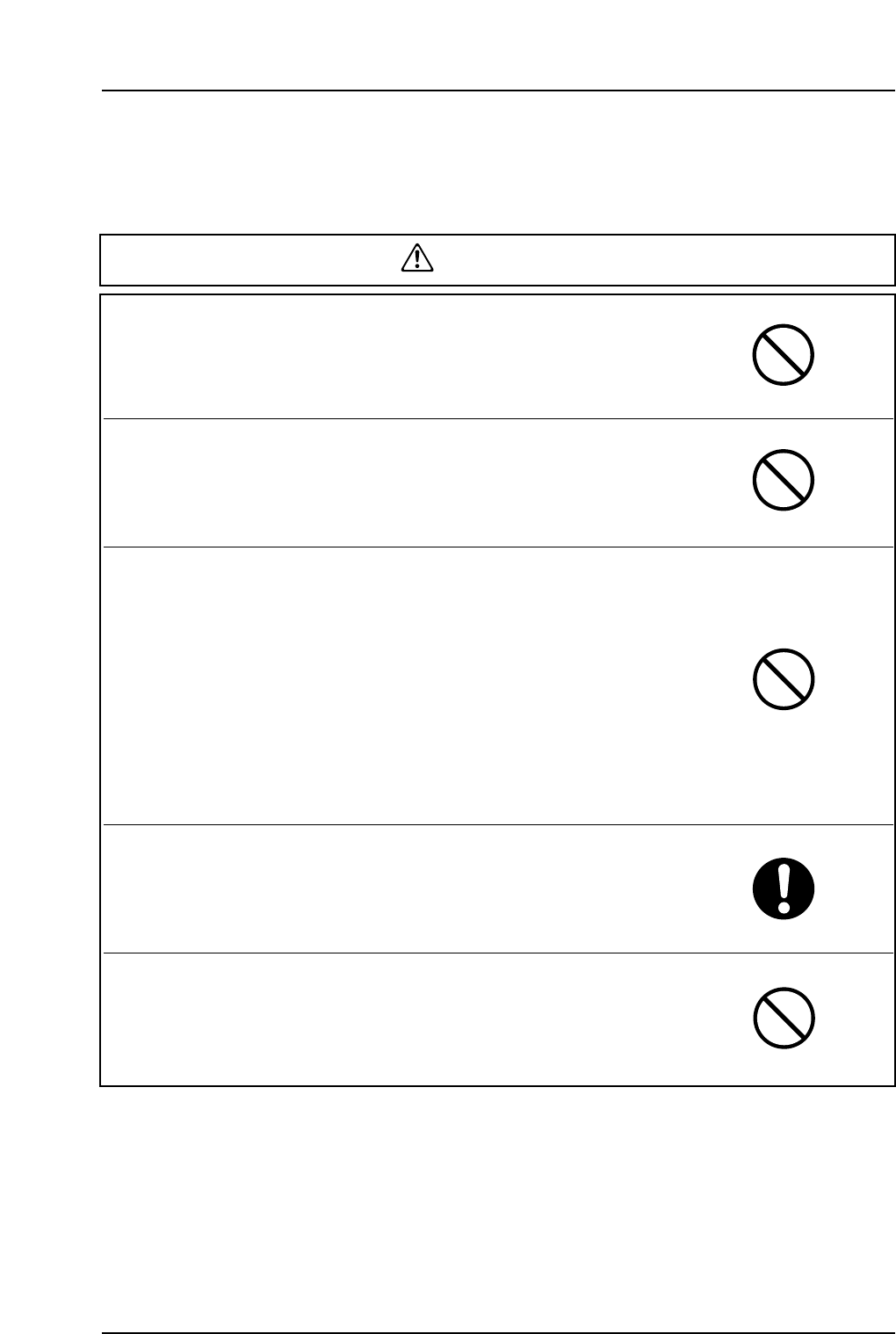 ● Careless handling could cause an injury or equipment damage.